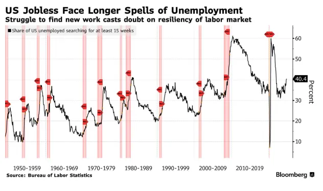 然而,对于那些苦苦挣扎了几个月仍未找到工作的相对较小但日益增长的美国人来说,这并不是他们的真实体验。在美国大约700万失业者中,超过40%的人已经无果而终地寻找工作15周或更长时间,这一比例在2008年全球金融危机之前很少见。