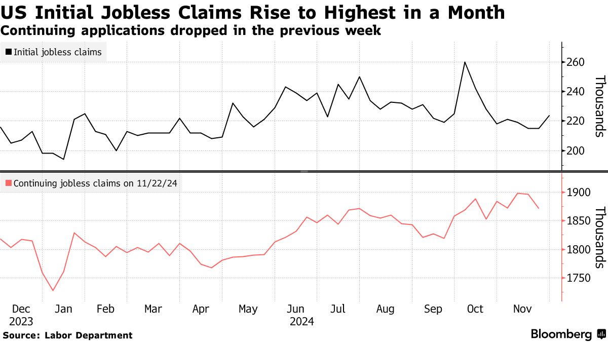 美国失业救济申请在感恩节周上升至一个月高点 - 彭博社