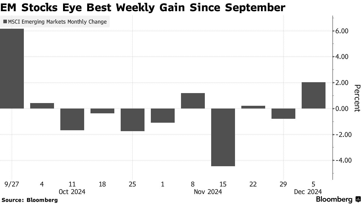 本周新兴市场股票的上涨主要是由于市场对中国即将召开的中央经济工作会议将带来决定性政策支持以刺激2025年经济增长的希望。