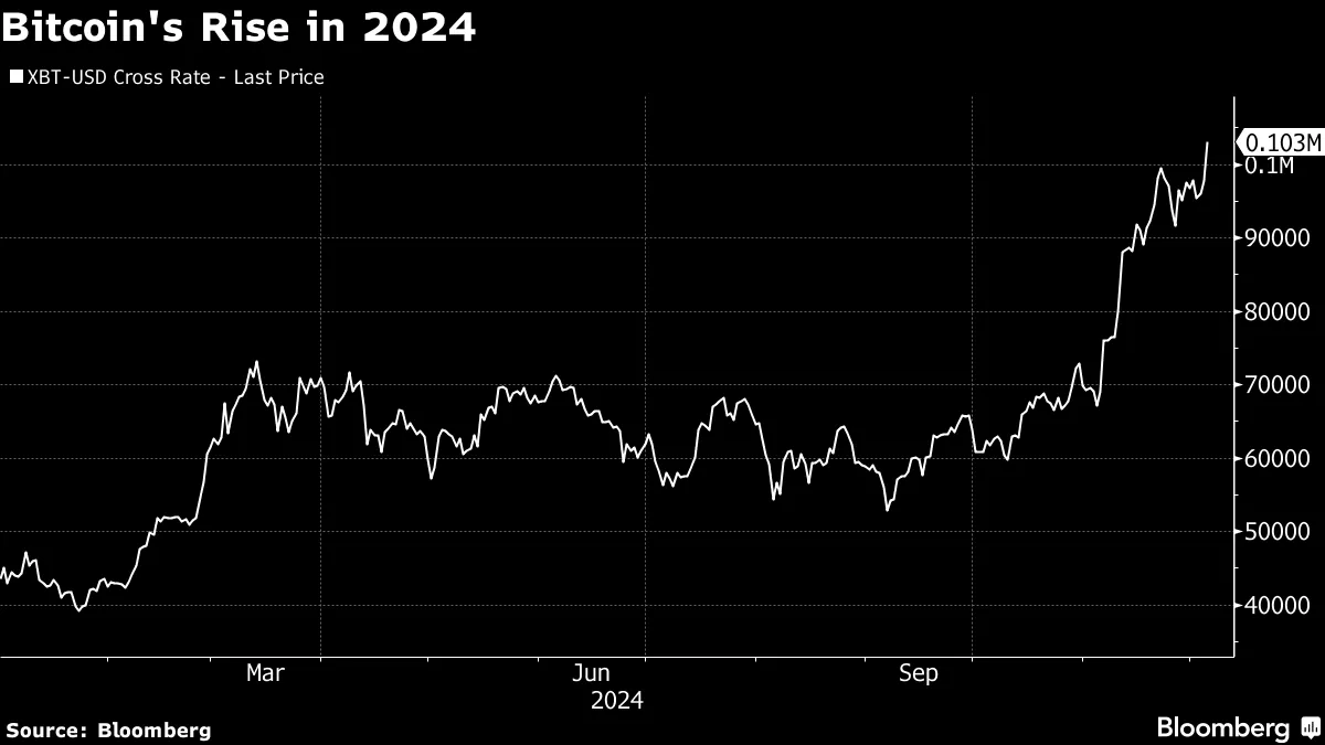比特币飙升超过100,000美元。当选总统唐纳德·特朗普选择一位加密货币支持者担任美国证券监管机构的新负责人时,比特币创下了新高,交易者对放松监管的前景感到兴奋。