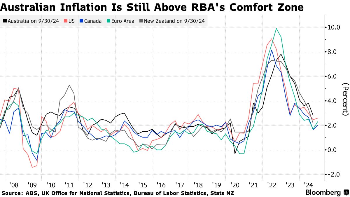 在大多数发达国家的同行们已经进入宽松周期之际,澳大利亚储备银行自2023年底以来将利率维持在13年来的最高水平4.35%,而大多数经济学家预计这一情况至少会持续到2月。