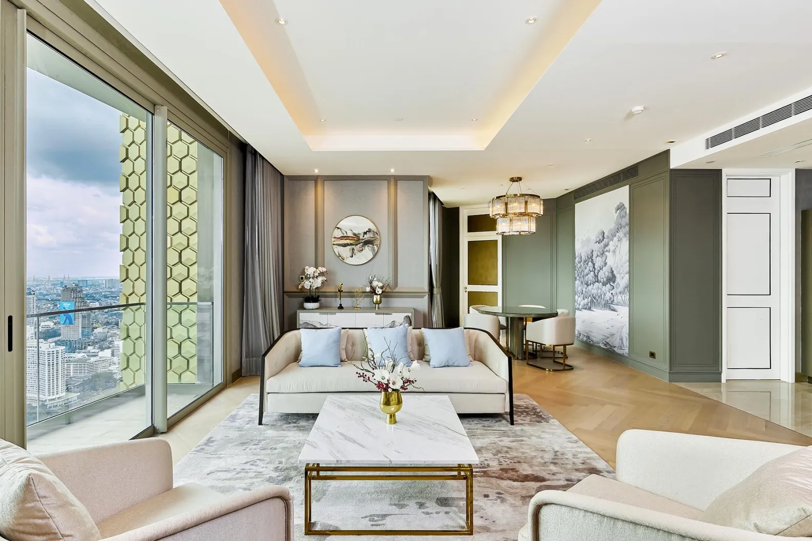 这座146个单元的文华东方物业由Joyce Wang Studio设计内部,位于查龙那空,曾经是湄南河较不受欢迎的一侧。它是一个由当地公司Magnolia Quality Development Corp.、购物中心运营商Siam Piwat和由亿万富翁Dhanin Chearavanont控制的企业集团Charoen Pokphand Group组成的综合体的一部分。