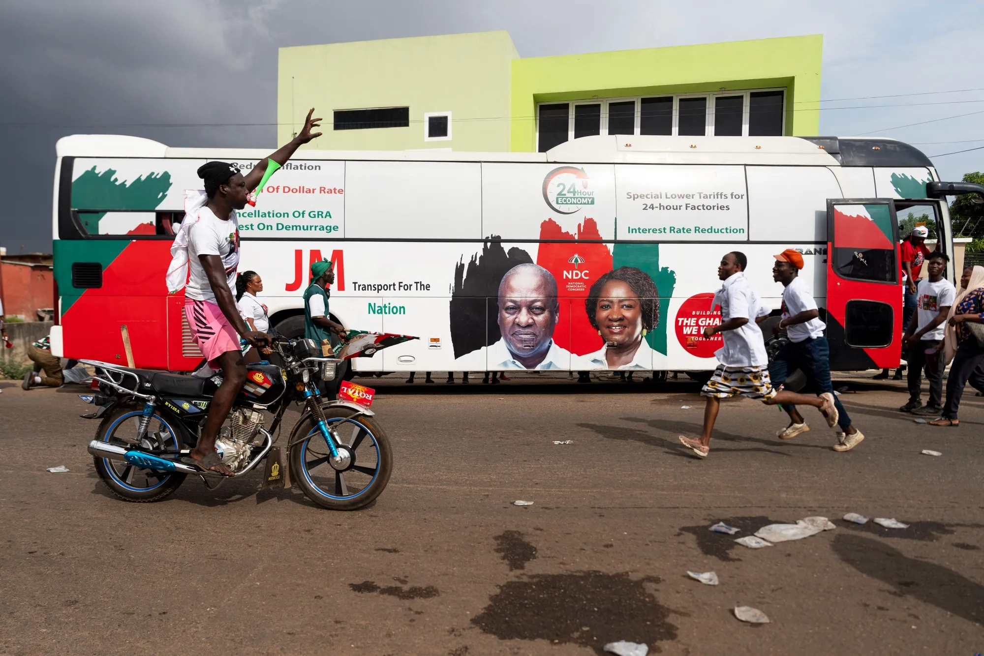 在12月5日阿克拉的一次集会前,约翰·德拉马尼·马哈马的加纳国家民主大会党支持者。