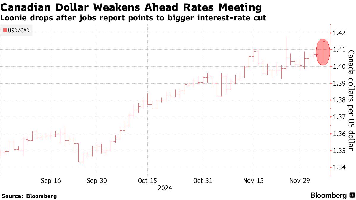 “我们现在认为加拿大央行下周将采取更积极的行动,降息50个基点,并预示在2025年更快回归中性,”多伦多Corpay的首席市场策略师卡尔·沙莫塔(Karl Schamotta)写道。“加拿大的就业市场仍然严重失衡,反映出经济在努力产生私营部门增长。”