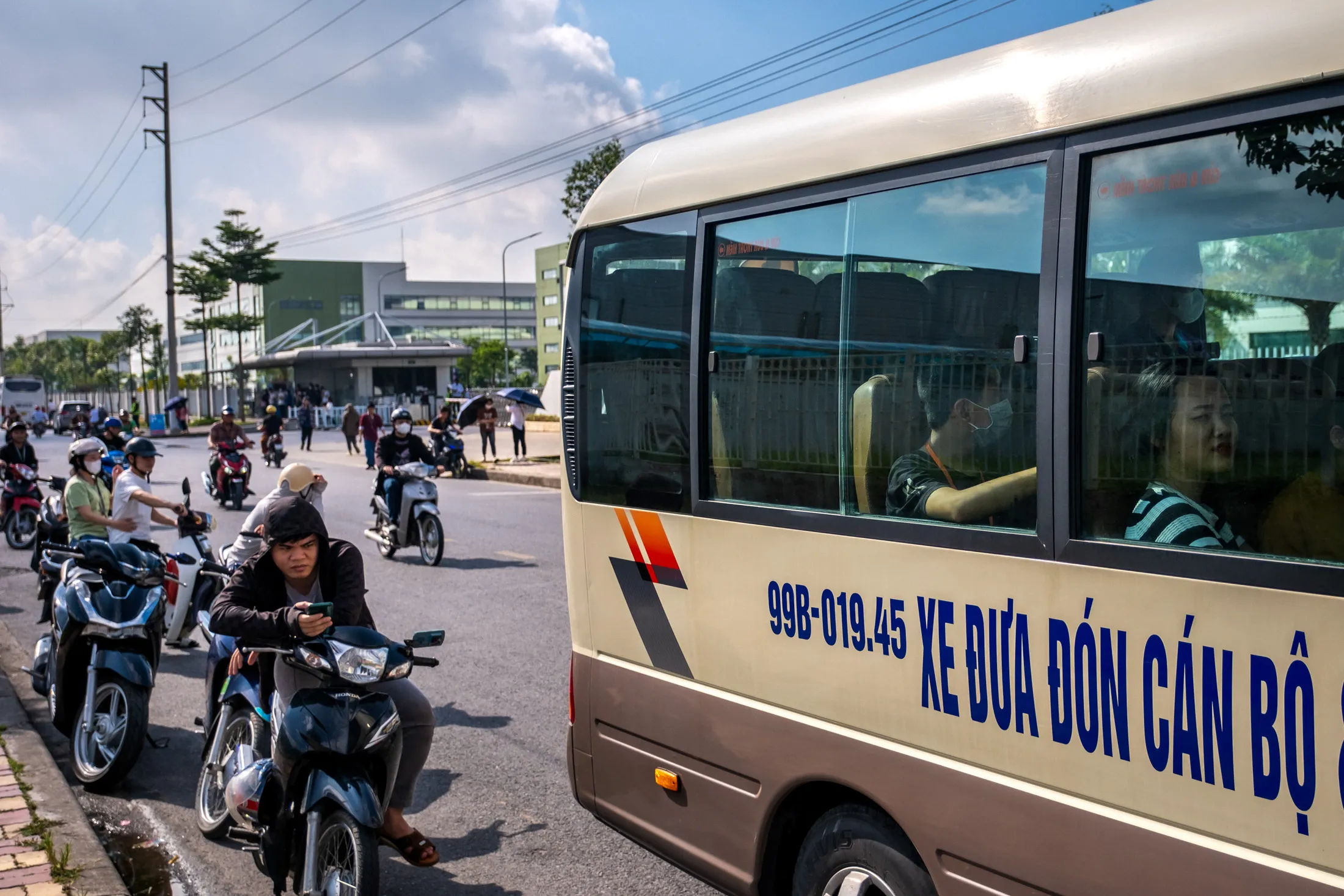 2023年7月,越南北宁的歌尔科技工厂工人换班。摄影师:林芳/彭博社今年第一季度,北宁的企业通过当地就业服务平台寻求15,500个职位的候选人,比去年增长了超过50%。