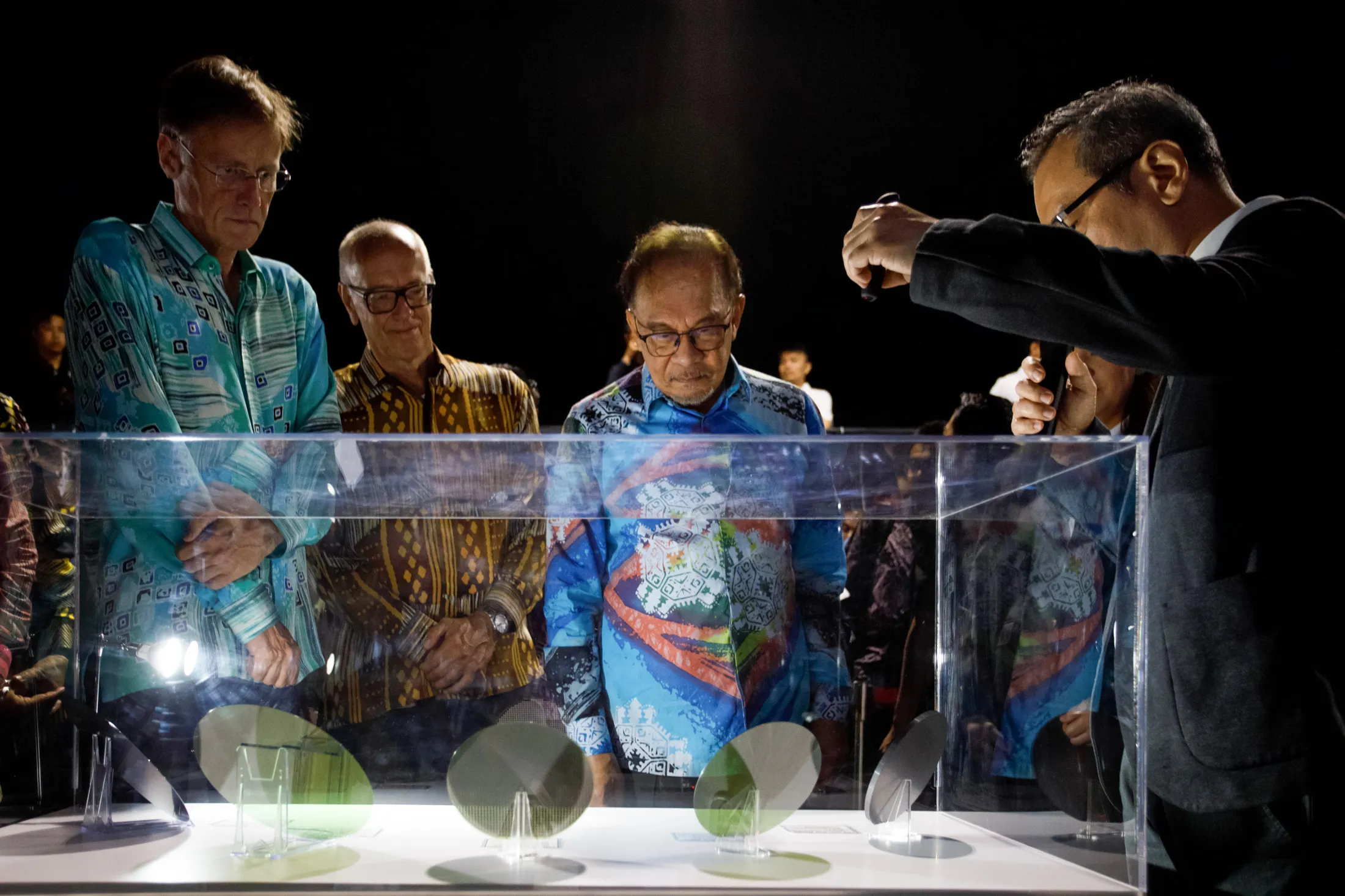 马来西亚总理安华·伊布拉欣(中)和英飞凌首席执行官约亨·哈内贝克(左)在8月查看该公司在吉打的新址的半导体晶圆。摄影师:Samsul Said/Bloomberg马来西亚的电力充足,价格在东南亚是最低的之一,仅为新加坡商业电价的三分之一。