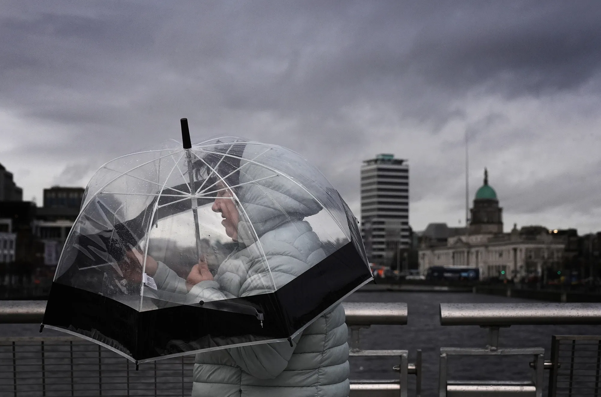 一名在都柏林市中心的人在12月6日躲在伞下。