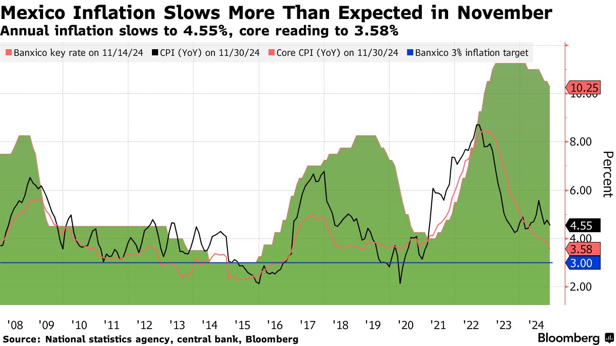 摄影师:Marian Carrasquero/Bloomberg墨西哥的整体通胀在11月份略微放缓,超出预期,这提高了下周中央银行会议上连续第四次降息的可能性。