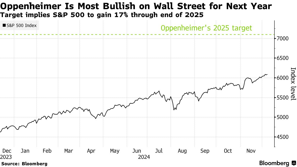 《奥本海默超越标准普尔500指数乐观者,目标为7100点 - 彭博社》