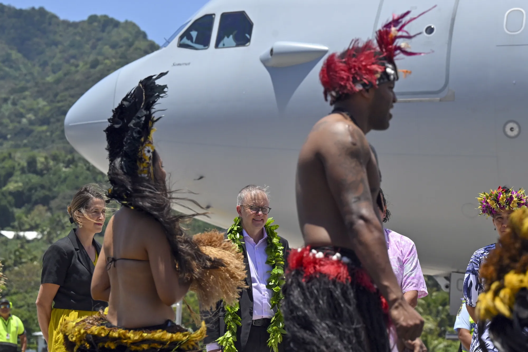 澳大利亚总理安东尼·阿尔巴尼斯于2023年11月7日星期二抵达库克群岛拉罗汤加参加太平洋岛国论坛。