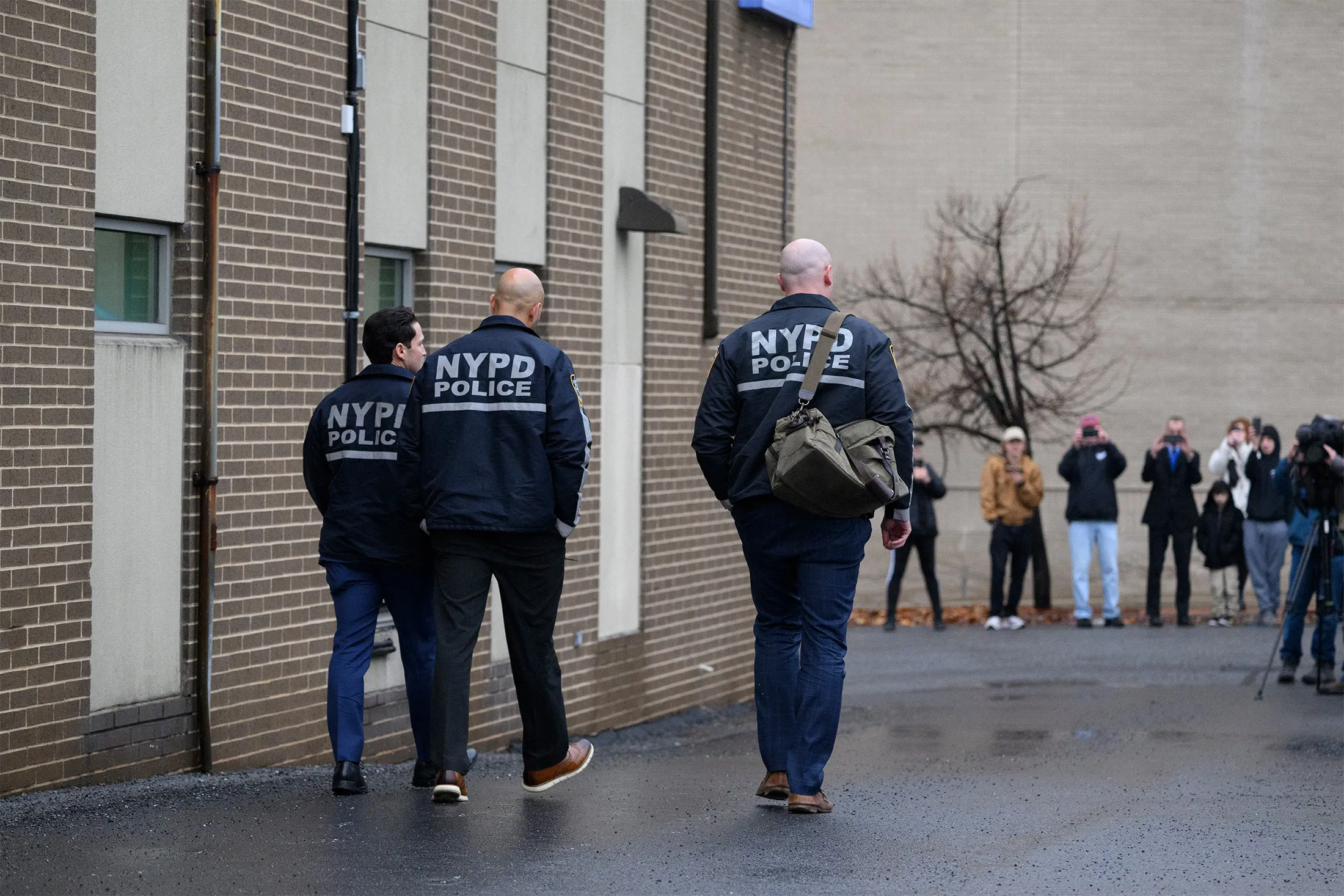 纽约警察局的成员于12月9日进入宾夕法尼亚州的阿尔图纳警察局。摄影师:杰夫·斯温森/盖蒂图片社路易吉·曼乔内是 联合健康集团公司 高管布莱恩·汤普森致命枪击案的“关注人员”,在周一被逮捕后被控持有非法枪支和使用假身份证。
