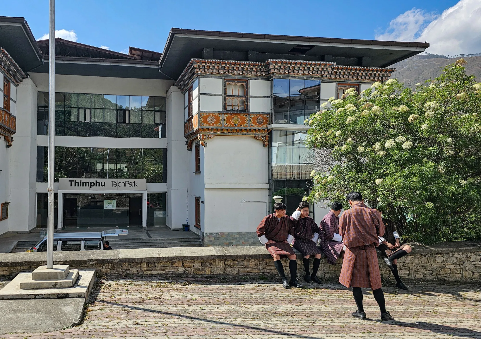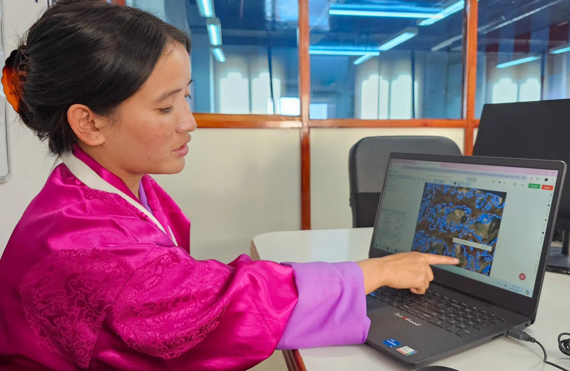 十几位数据专家在不丹的廷布科技园的办公室中完善人工智能模型,时间是在十月。