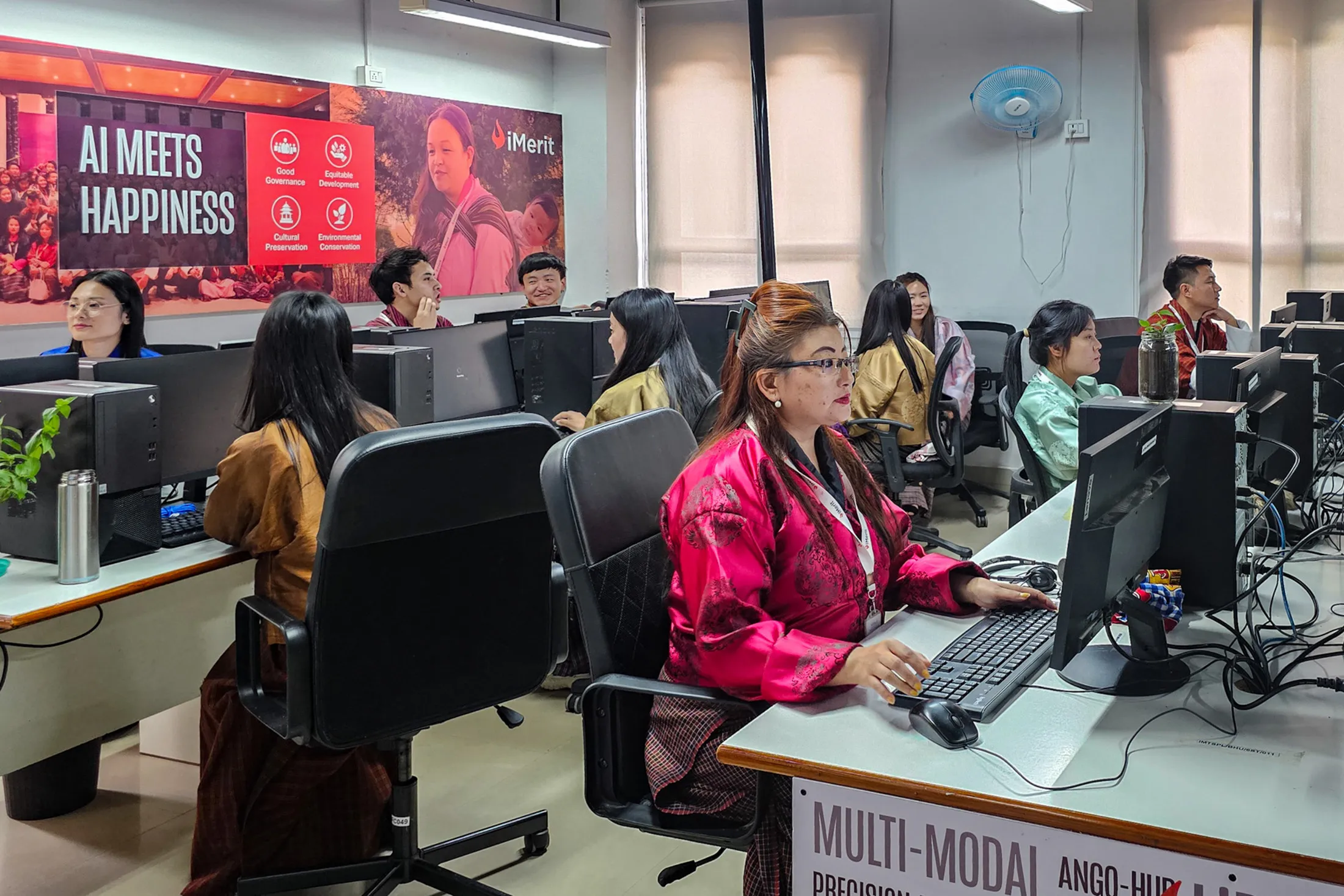 iMerit在不丹廷布的办公室,拍摄于十月。摄影师:萨里莎·赖/彭博社在肯尼亚,一家初创公司正在开发技术,以扫描灌木丛寻找偷猎者的迹象。在哈萨克斯坦,医学专家正在教模型识别肺癌的早期阶段。在印度、韩国、越南等地,时薪65美元的语言学家正在帮助模型掌握英语以外的语言。