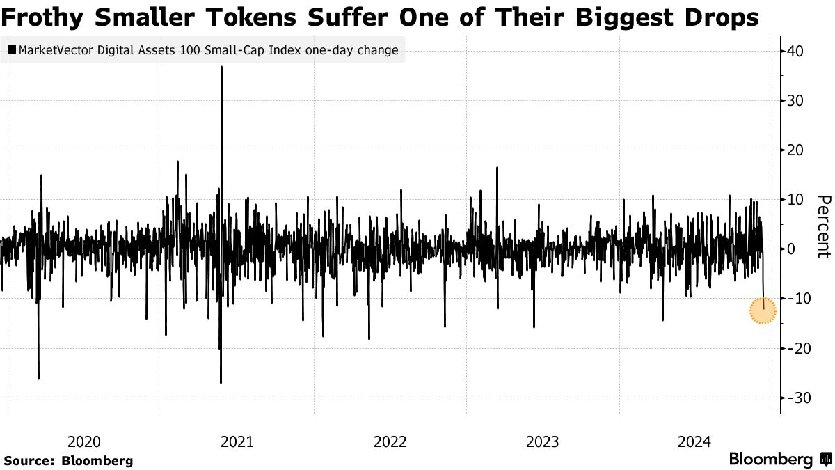 比特币(BTC)波动,较小代币下跌,泡沫式加密货币反弹开始减弱 - 彭博社