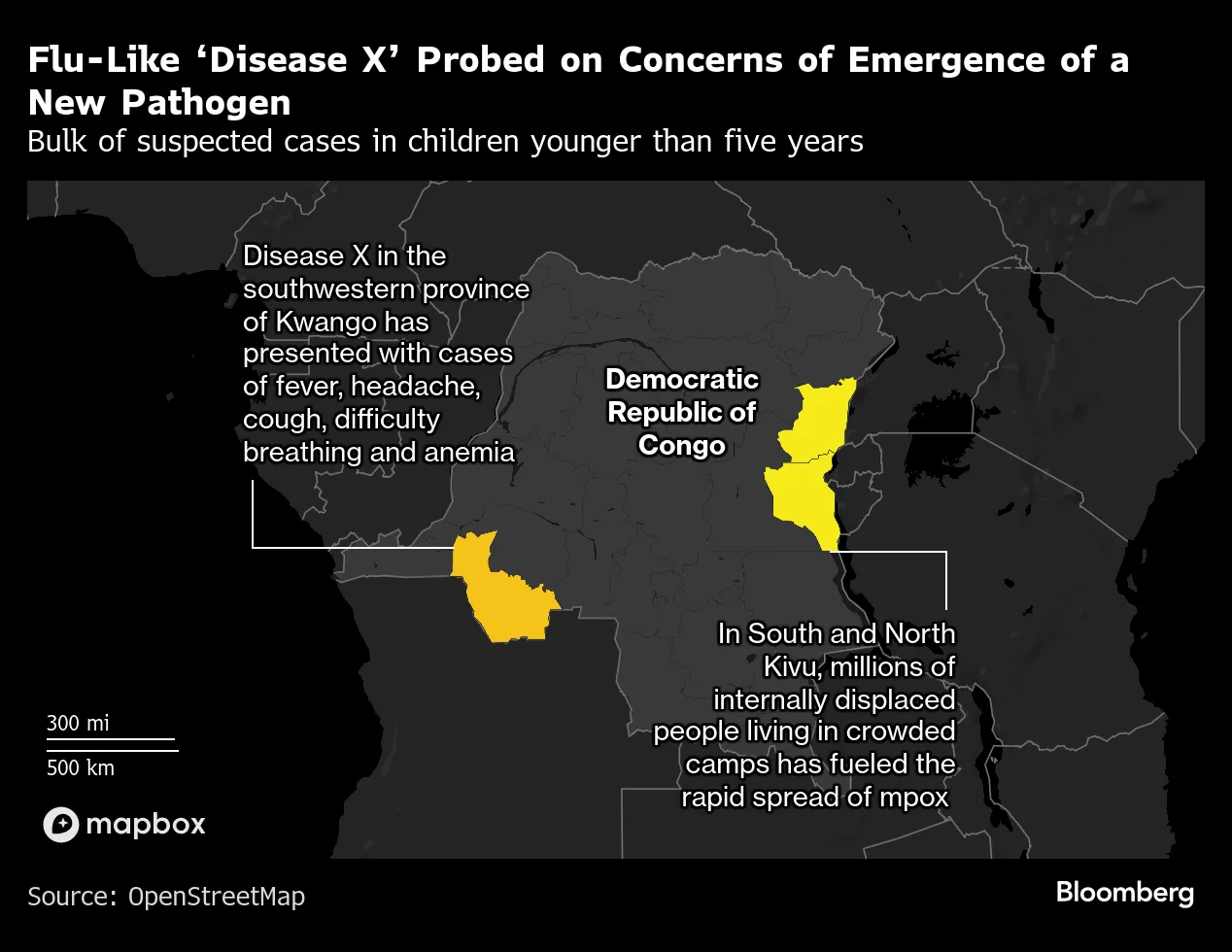 数十人已经死亡,数百人因一种被称为“X病”的神秘流感样疾病而生病,该疾病于2024年10月底首次在刚果民主共和国的一个偏远地区被发现。国际卫生组织和刚果当局已派遣团队进行调查,但他们尚未确定病因。感染者出现了发热、头痛、咳嗽、流鼻涕和身体疼痛等症状。相对较短时间内高死亡率和病例数量的增加引发了人们的担忧,担心新病原体的出现可能会在Covid-19迫使各国关闭边界并使经济和社会几乎停滞几年前后广泛传播。