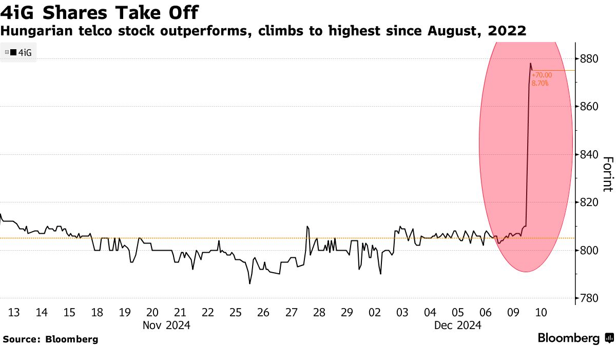 该股票上涨了多达9.1%,达到自2022年8月以来的最高点。截至布达佩斯时间下午12:32,股价上涨了7.4%,达870福林,公司的估值为2620亿福林(6.7亿美元)。