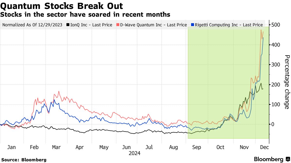 该集团最近表现强劲。IonQ 从九月的低点上涨了超过400%,D-Wave 也是如此,而Rigetti 从九月的低点上涨了超过600%。