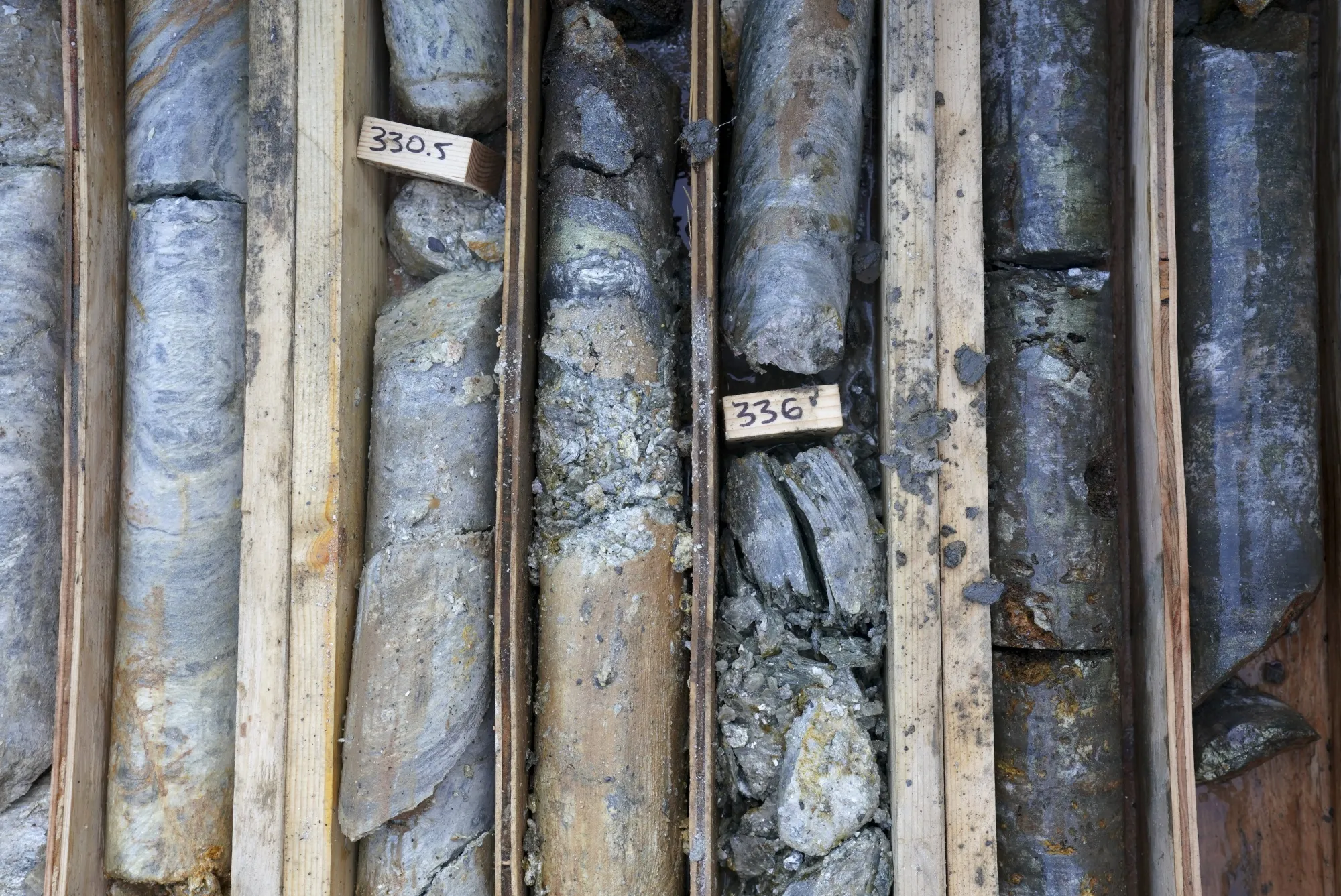 阿拉斯加安布勒矿区钻探现场的岩心样本。