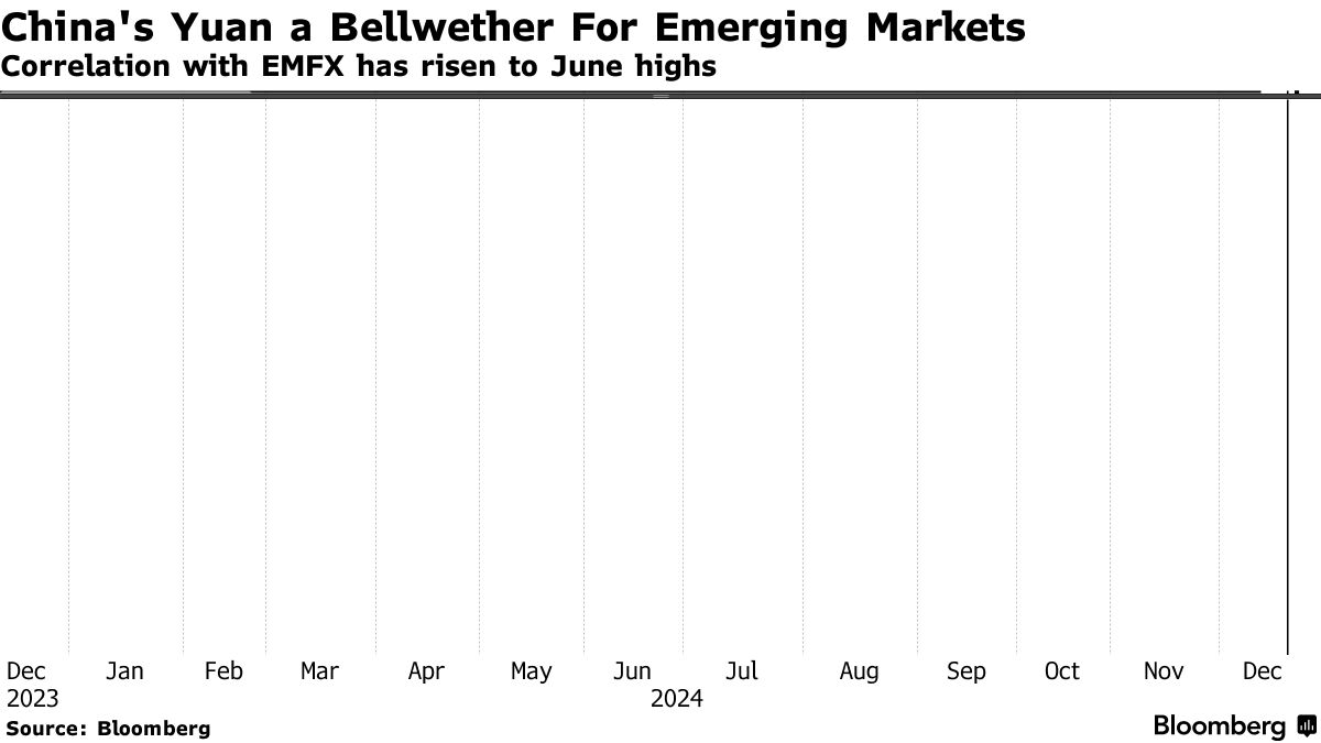 中国汇率与更广泛的发展中国家外汇指标之间的相关性攀升至自六月以来的最高水平,突显出美国与中国之间的关税策略仍然是新兴市场的一个主要风险。