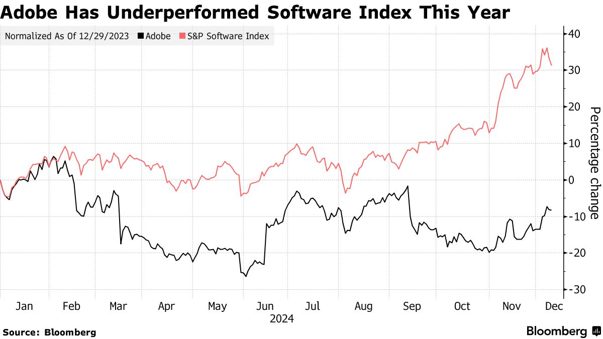 今年股价下跌了 8.3%,表现不及一个 跟踪软件行业的指数,该指数上涨超过 30%。在上个季度的指导意见让华尔街失望之后,市场对周三收盘后即将公布的业绩施加了压力。Adobe 需要证明它能够从其人工智能工具中赚钱,并抵御来自生成性人工智能平台的日益竞争,这些平台可以根据用户提示创建图像和视频。