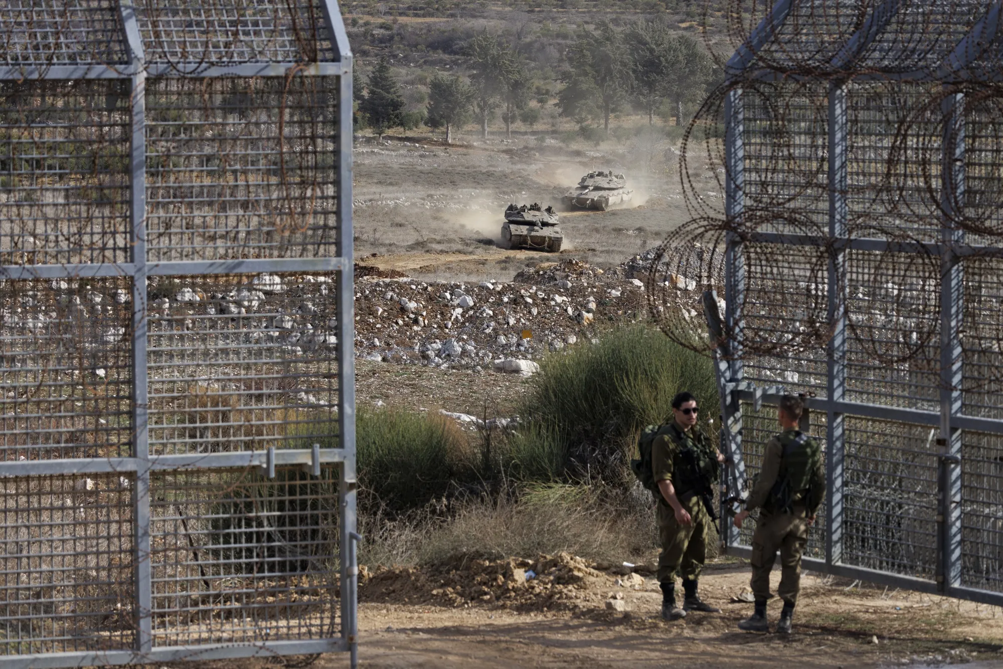 以色列坦克在戈兰高地的马吉达尔·沙姆斯看到的缓冲区沿着边界的叙利亚一侧,日期为12月11日。摄影师:科比·沃尔夫/彭博社早些时候:以色列加大空袭力度,向叙利亚深处派遣部队