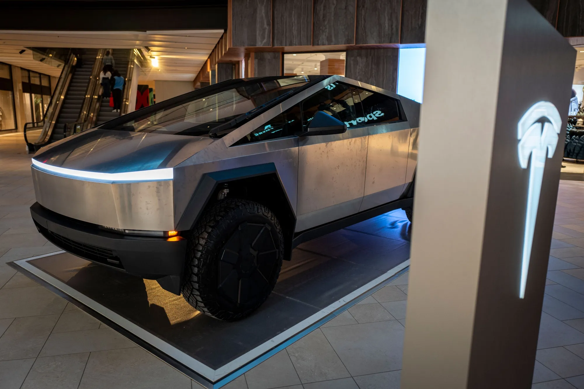 一辆特斯拉Cybertruck在蒙特利尔的Royalmount购物中心。