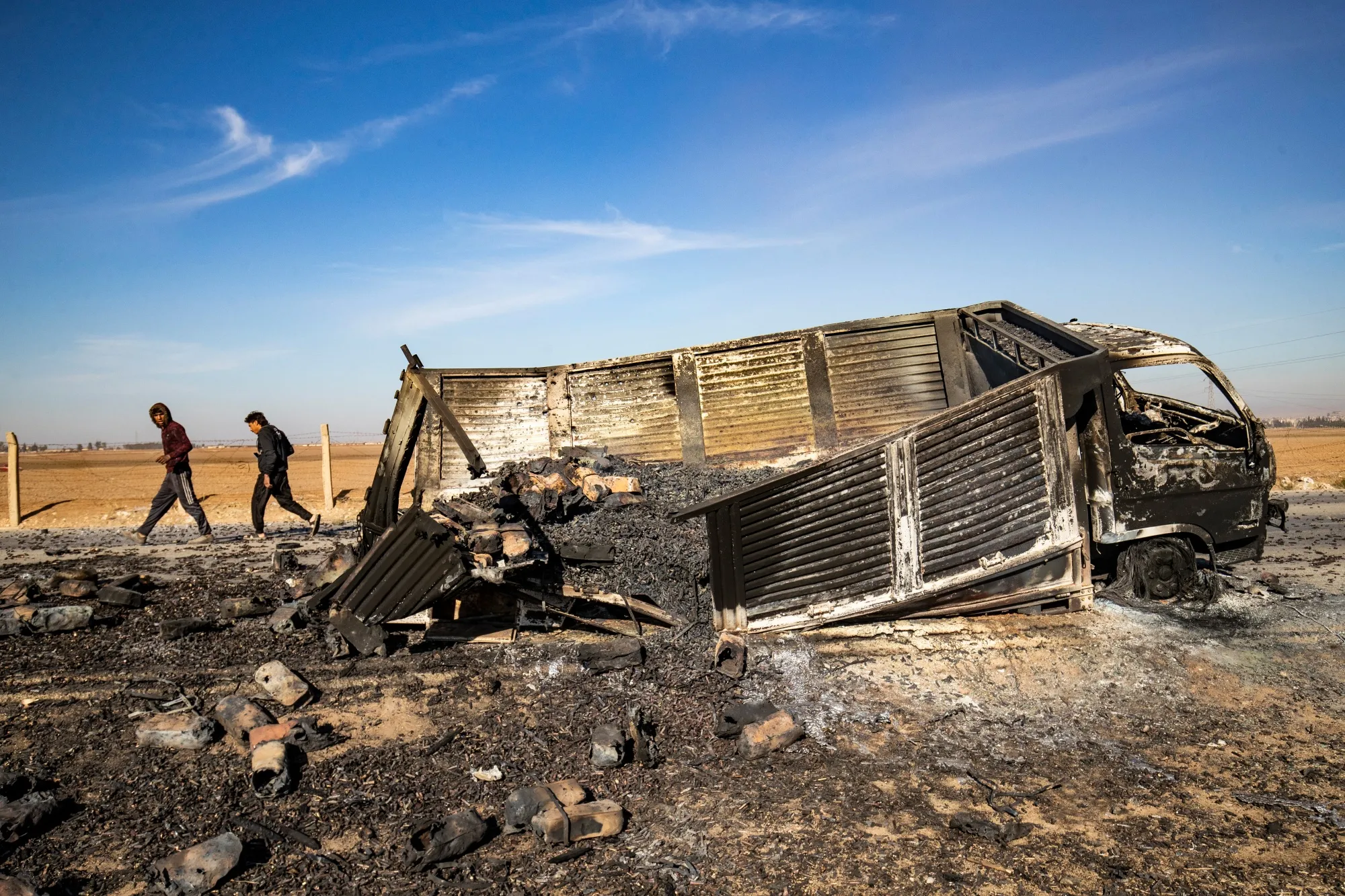 人们在叙利亚卡米什利的以色列空袭现场经过一辆被摧毁的车辆,时间是12月10日。摄影师:Delil Souleiman/AFP/Getty Images虽然大规模的以色列空袭引发了阿拉伯国家的愤怒,但美国表示支持叙利亚邻国保护其边界的权利。