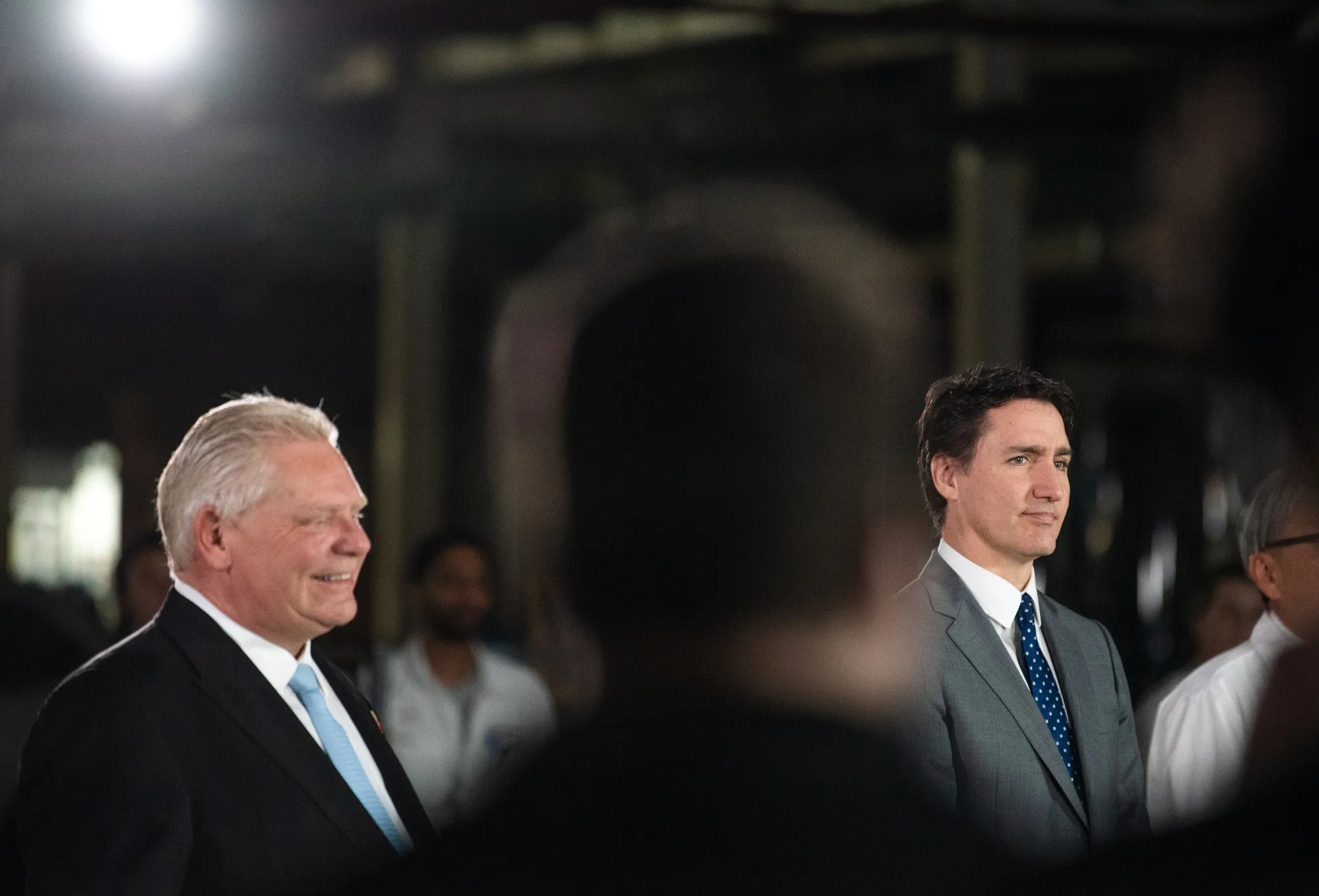 安大略省省长道格·福特(Doug Ford)与加拿大总理贾斯廷·特鲁多(Justin Trudeau)在一起
