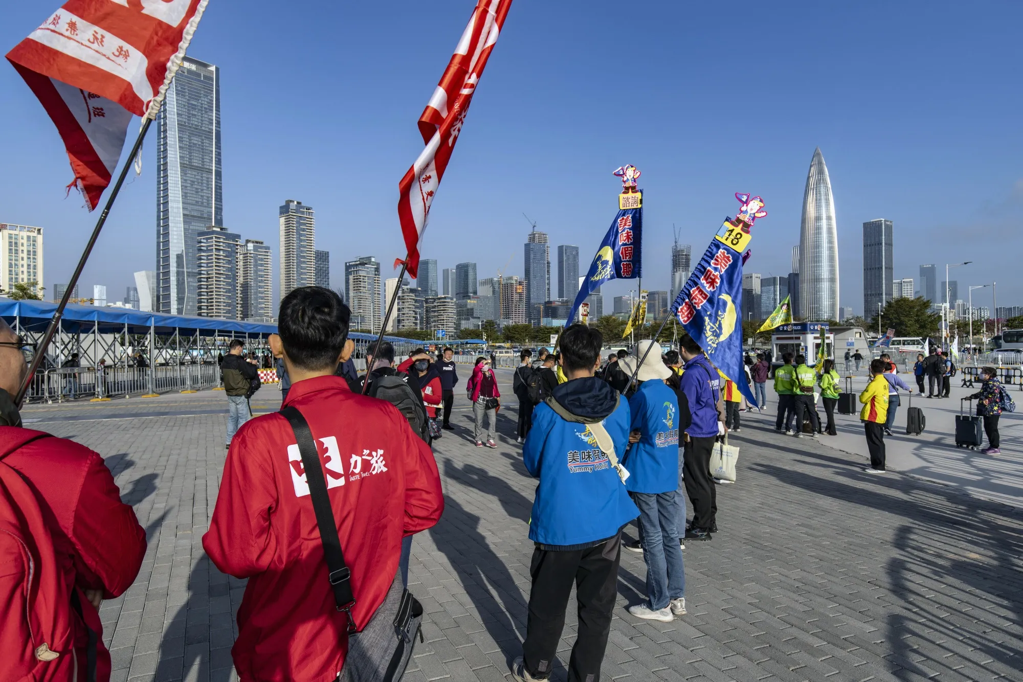导游在中国深圳的深圳湾口岸外等待接待来自香港的旅游团。