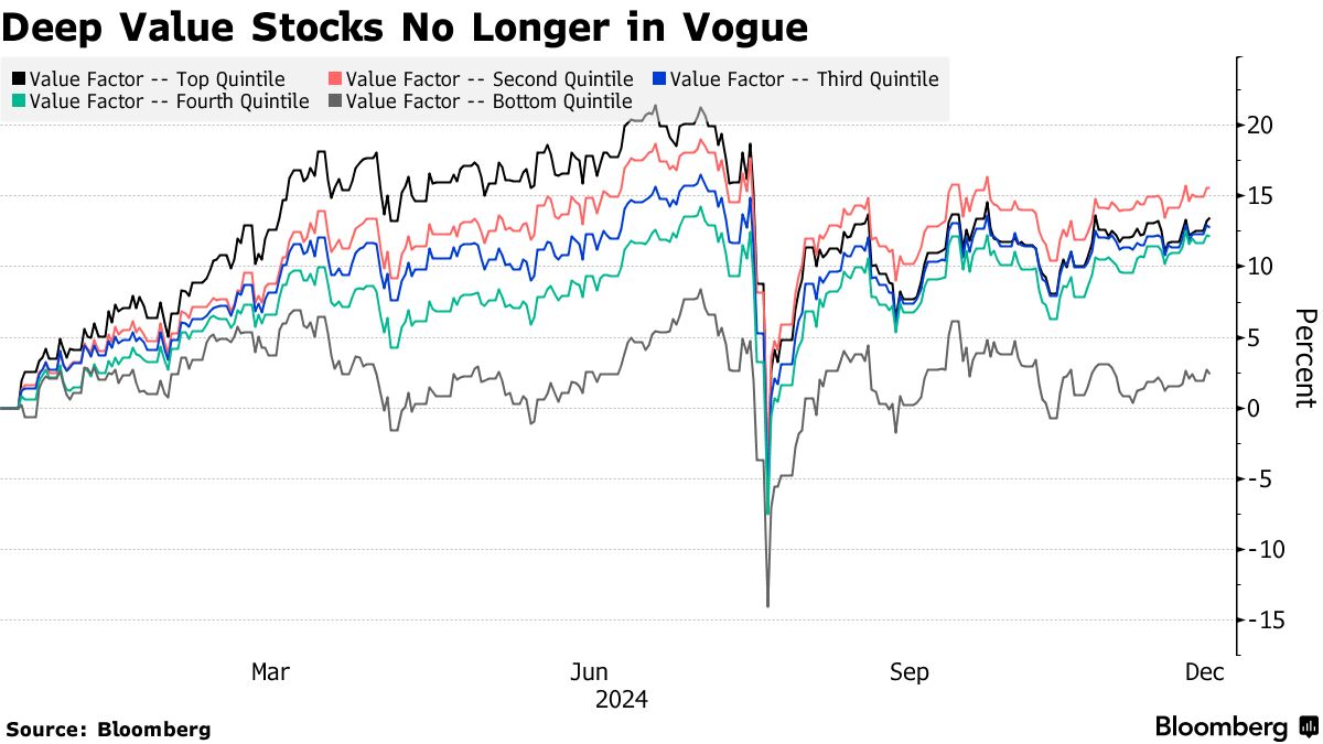 “虽然低市净率股票表现优于市场,但它们是低质量企业,ROE的改善不足以证明它们的超额表现,”位于芝加哥的价值投资基金哈里斯的副主席大卫·赫罗表示。“我们需要看到低ROE股票的改善才能引起我们的兴趣。”