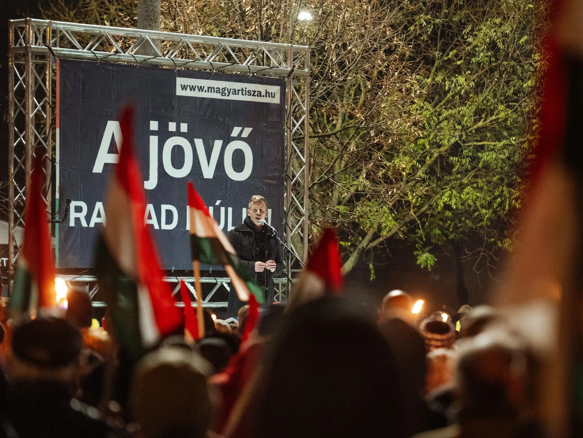 彼得·马加尔在欧尔班的出生地塞克什白堡于11月29日集结支持者。他政党的口号是“未来取决于你。”摄影师:彼得·桑蒂尼/彭博社### 数字背后