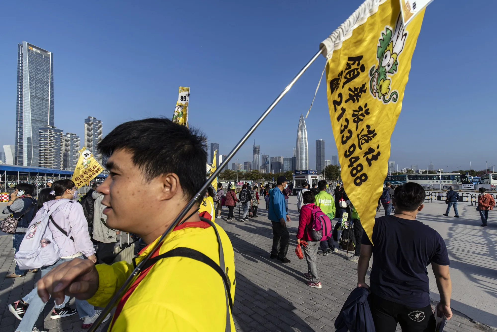 中国大陆的导游等待接收来自香港的旅游团。摄影师:沈奇来/彭博社越来越多的年轻中国人正在获得导游资格证,这是由于白领工作前景不稳定,并且希望国内度假热潮能提供稳定的收入。