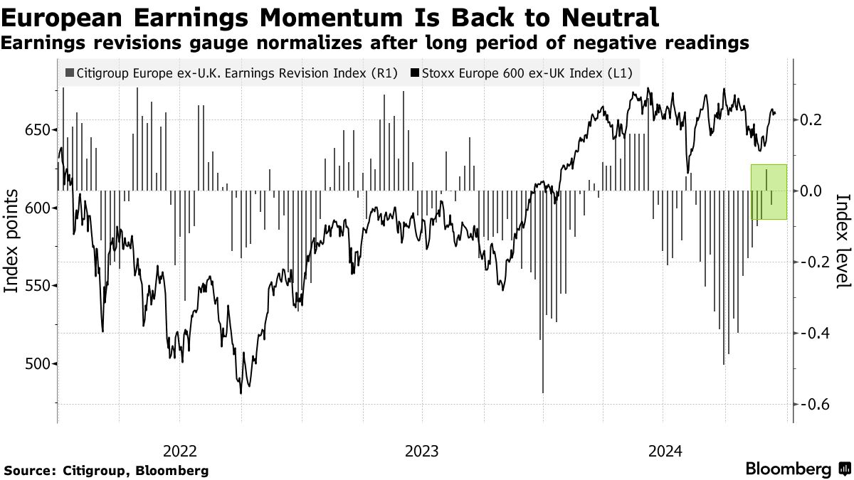 曼特赫说:“我们对我们针对欧洲大陆的专有盈利修订指数从9月到10月的衰退水平回升到中性水平感到鼓舞。这意味着大部分削减已经过去。”