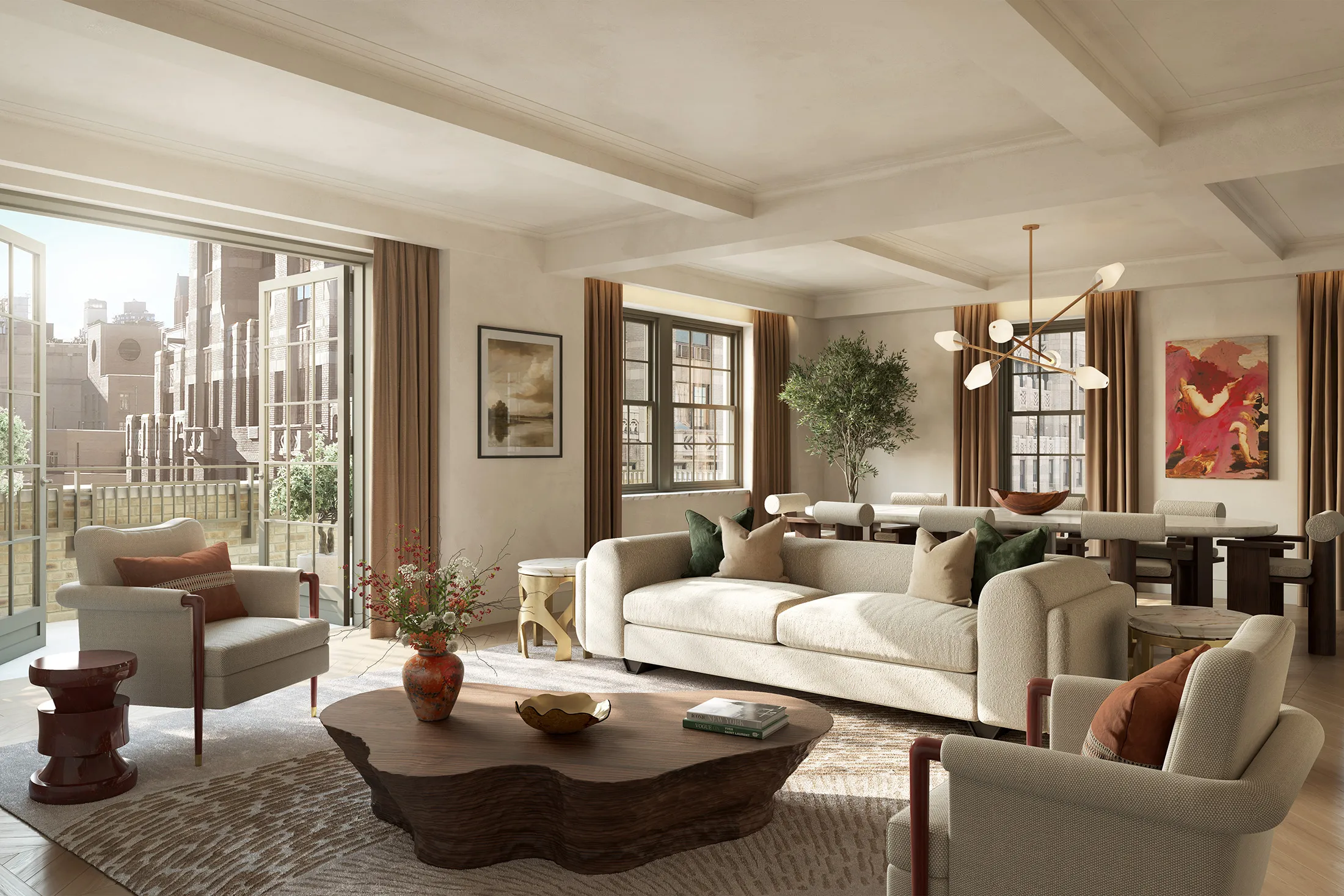 萨里公寓的室内效果图。来源:Noë & Associates与V1曼哈顿的一些新项目进入市场,增加了更多库存。在过去一个月中,亨利和255东77街——由Naftali集团开发的两个项目——签署了超过21笔超过400万美元的交易。由鲁本兄弟开发的历史悠久的装饰艺术酒店和住宅建筑萨里公寓,在九月和十月售出了14个公寓中的13个,价格高达2800万美元。