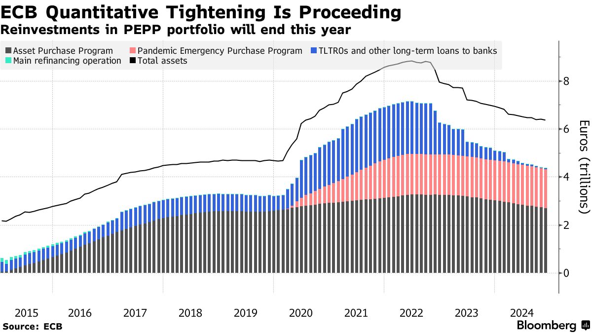 到期债券的再投资在7月减少,并将在下周停止,因为欧洲央行在圣诞假期前逐步结束操作。欧洲央行已经在去年年中停止了其常规投资组合的债务展期。