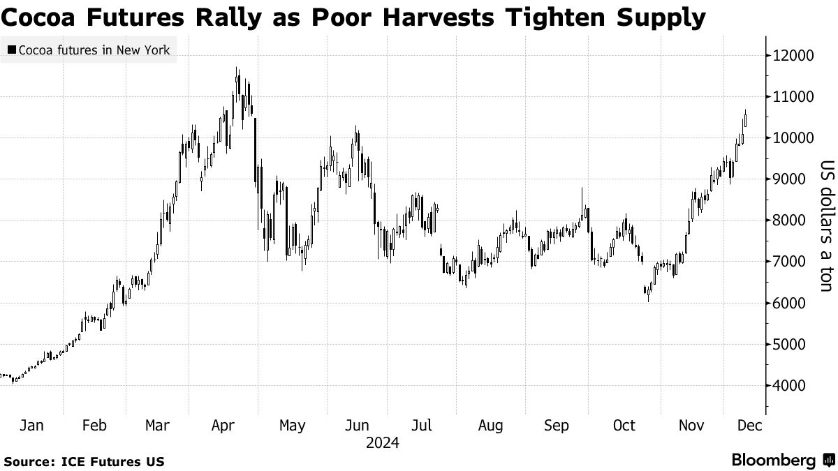 | 可可作物看起来更大,但无法解决巧克力危机由于供应担忧,可可价格回升至每吨10,000美元受到可可上涨影响的巧克力制造商仍需重建对冲 |