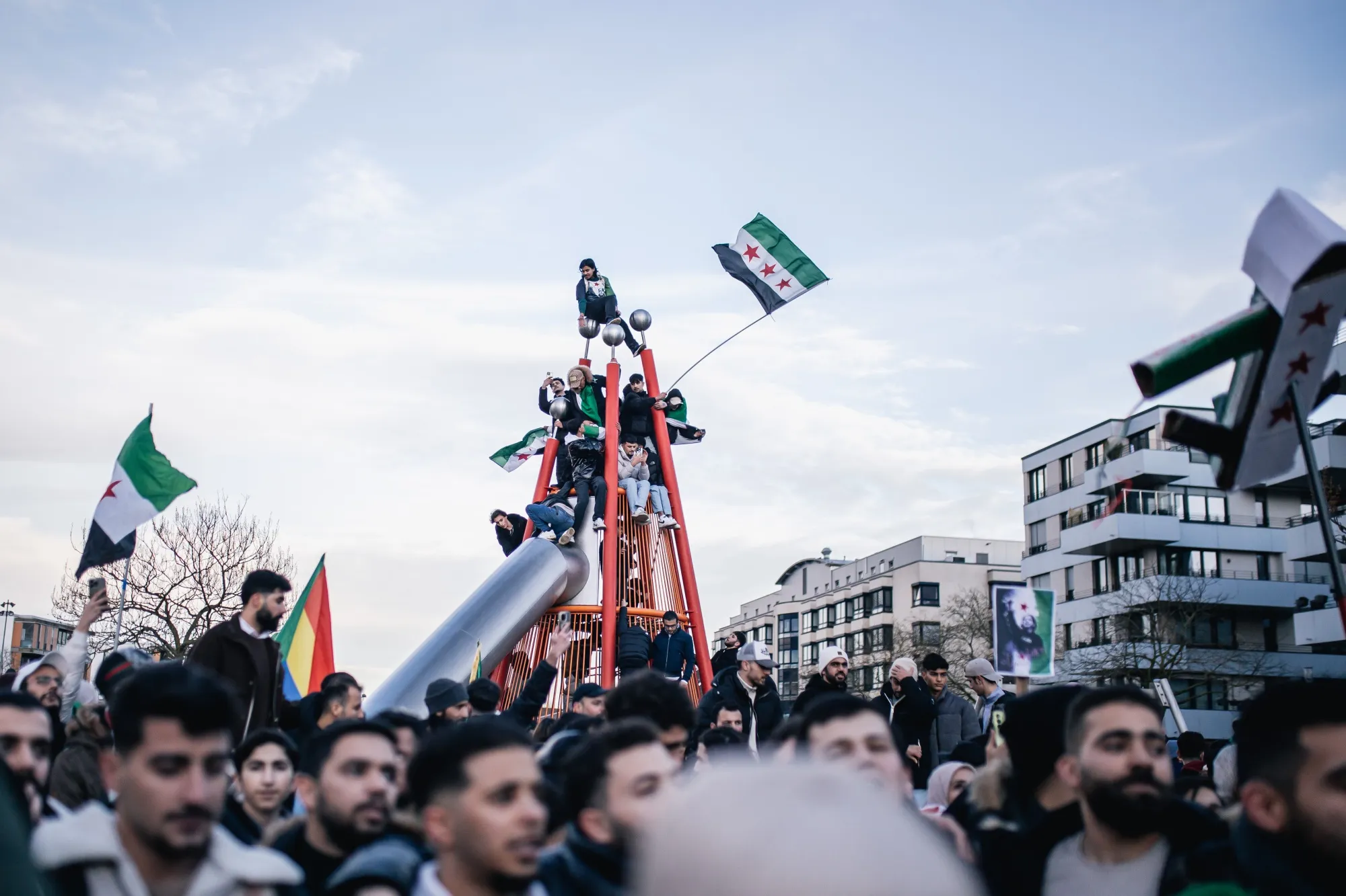 叙利亚人在德国埃森庆祝阿萨德政权的垮台,时间是12月8日。摄影师:Hesham Elsherif/安纳杜卢/盖蒂图片社