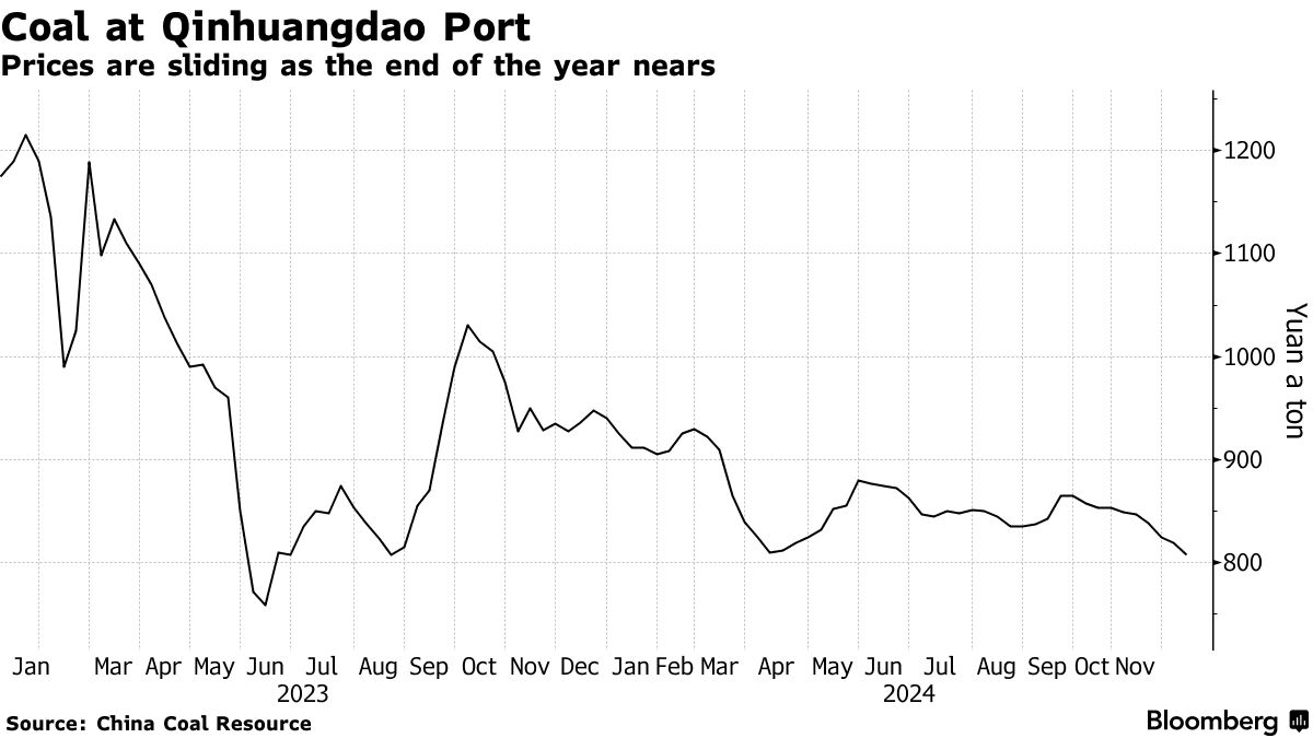 中国煤炭价格跌至年度低点,刺激措施令人失望 - 彭博社