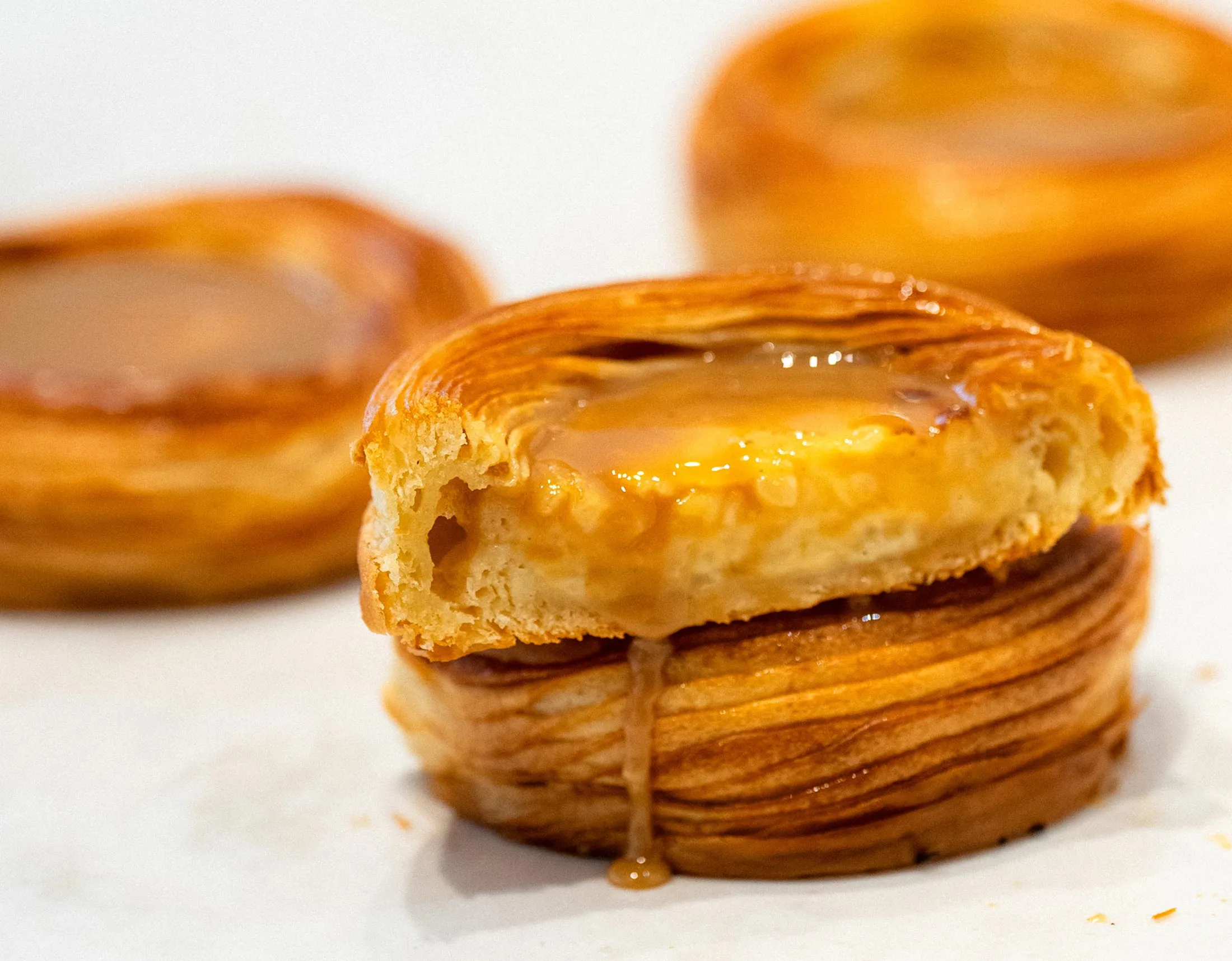 这款米布丁法式点心的馅料溢出。摄影师:本杰明·蒙特维尔迪/城市法式面包店 米布丁法式点心, 城市法式面包店