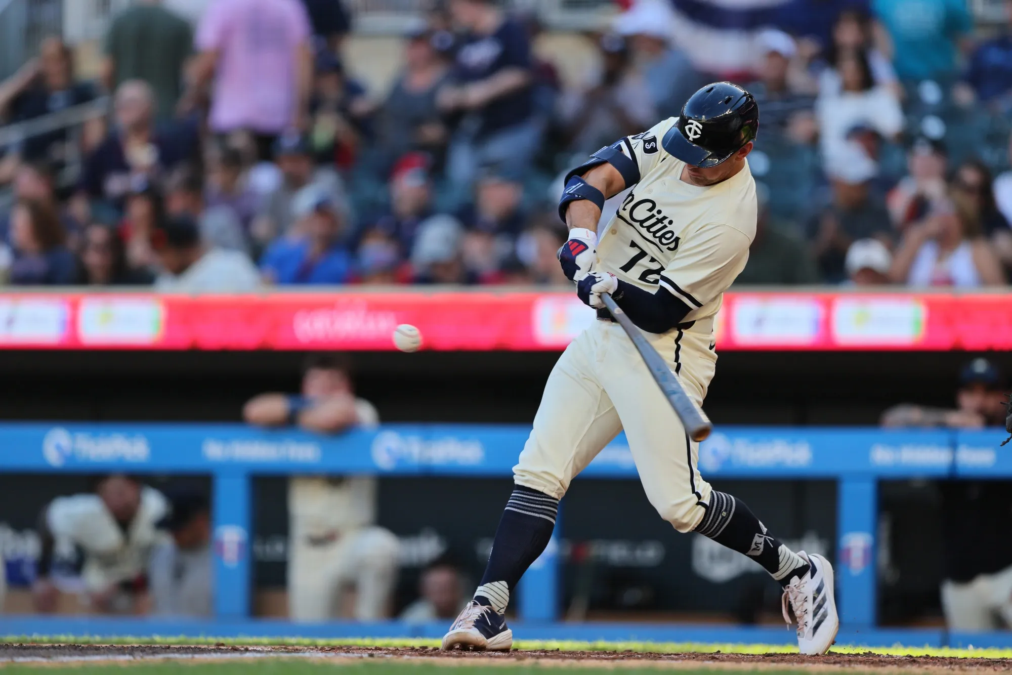 明尼苏达双城队的布鲁克斯·李在9月29日击球。