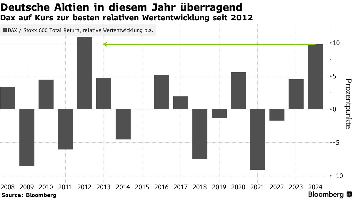 几年前,没有汽车制造商参与的Dax反弹是难以想象的。相反,Dax的很大一部分价值增长归功于全球对与软件、云计算和人工智能相关的所有事物的需求。根据彭博社的计算,SAP在2024年贡献了超过三分之一的指数点,因为这家欧洲最大的软件下载超过70%。