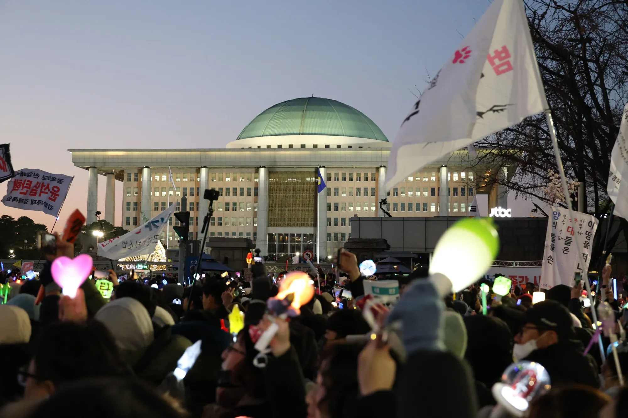 12月14日,首尔弹劾投票后的示威者。摄影师:郑钟/彭博社### 谁在掌控?