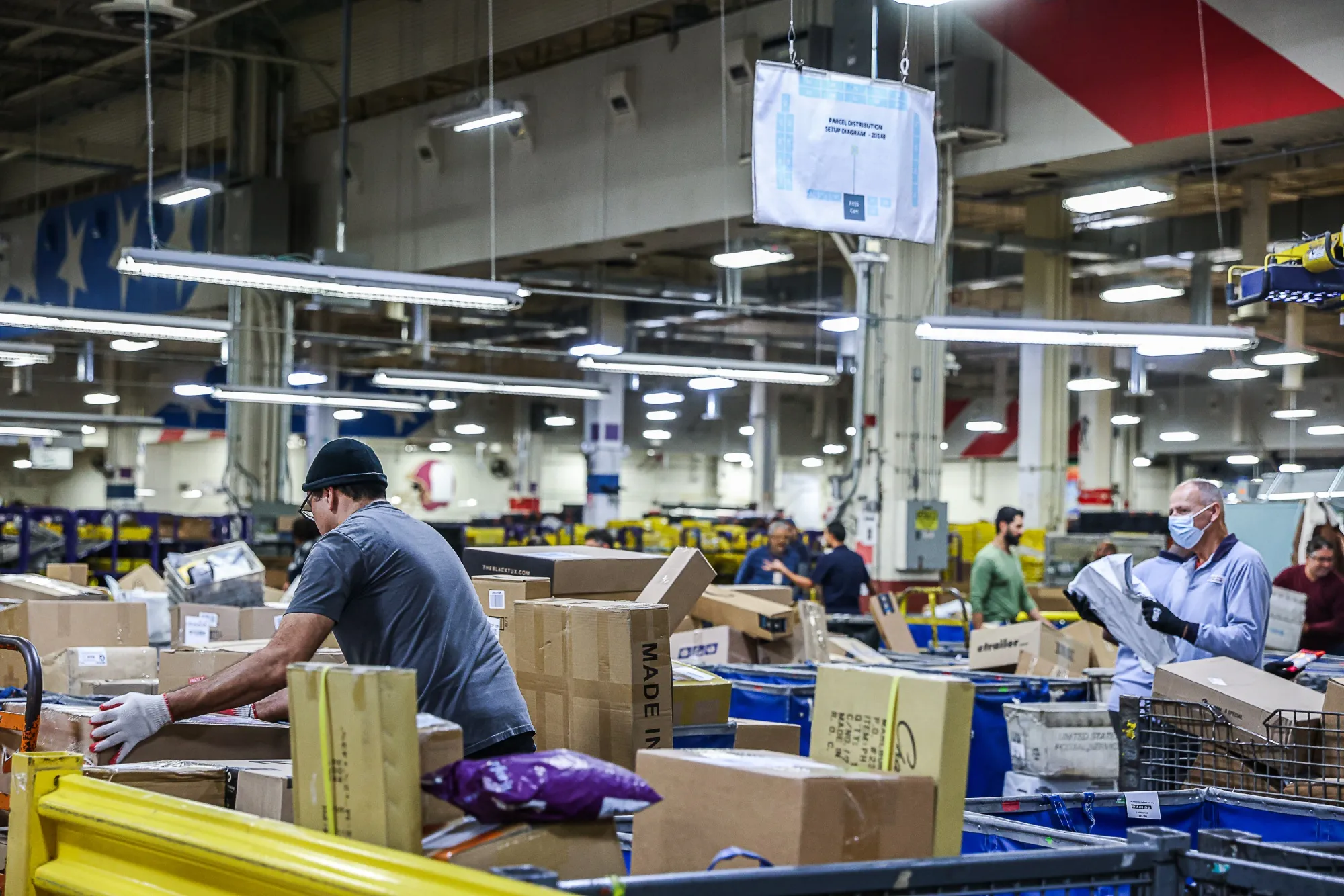 美国邮政服务在弗吉尼亚州达勒斯的处理和分发中心。
