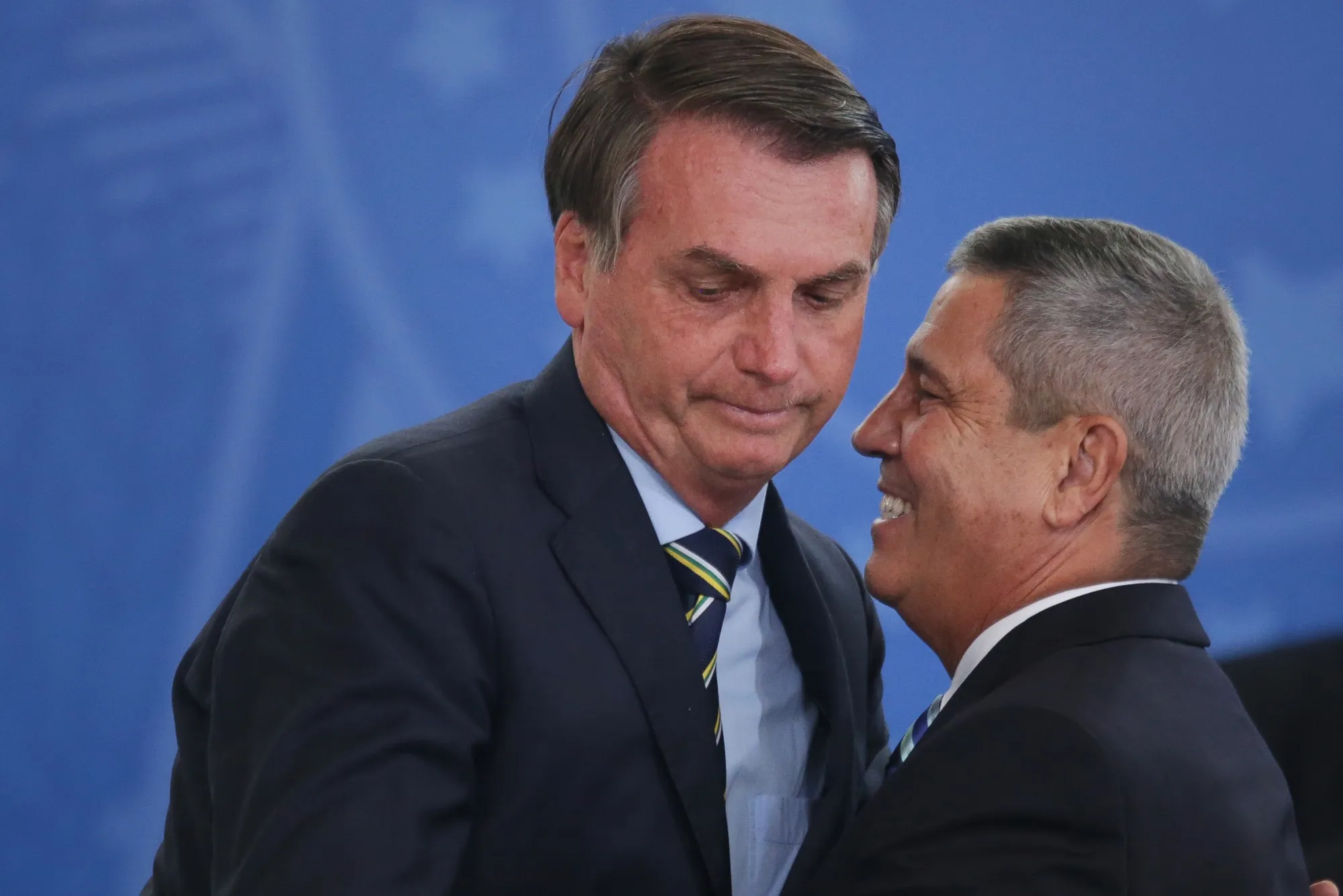 贾伊尔·博尔索纳罗在2020年巴西利亚的普拉纳图宫举行的宣誓仪式上与瓦尔特·布拉加·内托握手。