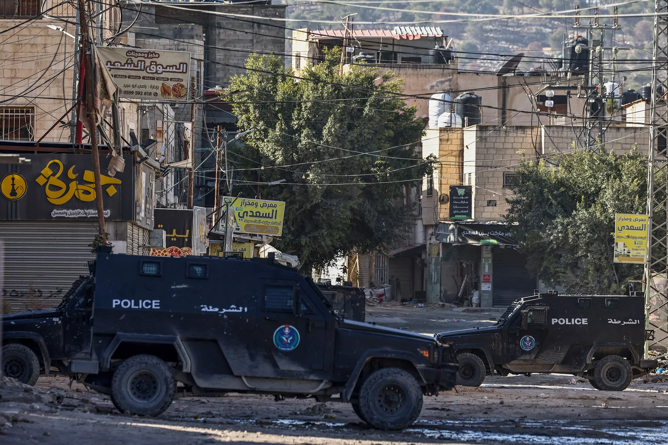巴勒斯坦权力机构(PA)安全部队的车辆在12月15日以色列占领的西岸杰宁营地与武装分子发生冲突时封锁了一条道路。摄影师:扎因·贾法尔/法新社/盖蒂图片社巴勒斯坦政府在一个冲突热点的西岸城市对武装分子展开了一次罕见且致命的清剿行动,称这是为了挫败即将发生的汽车炸弹袭击和其他攻击。