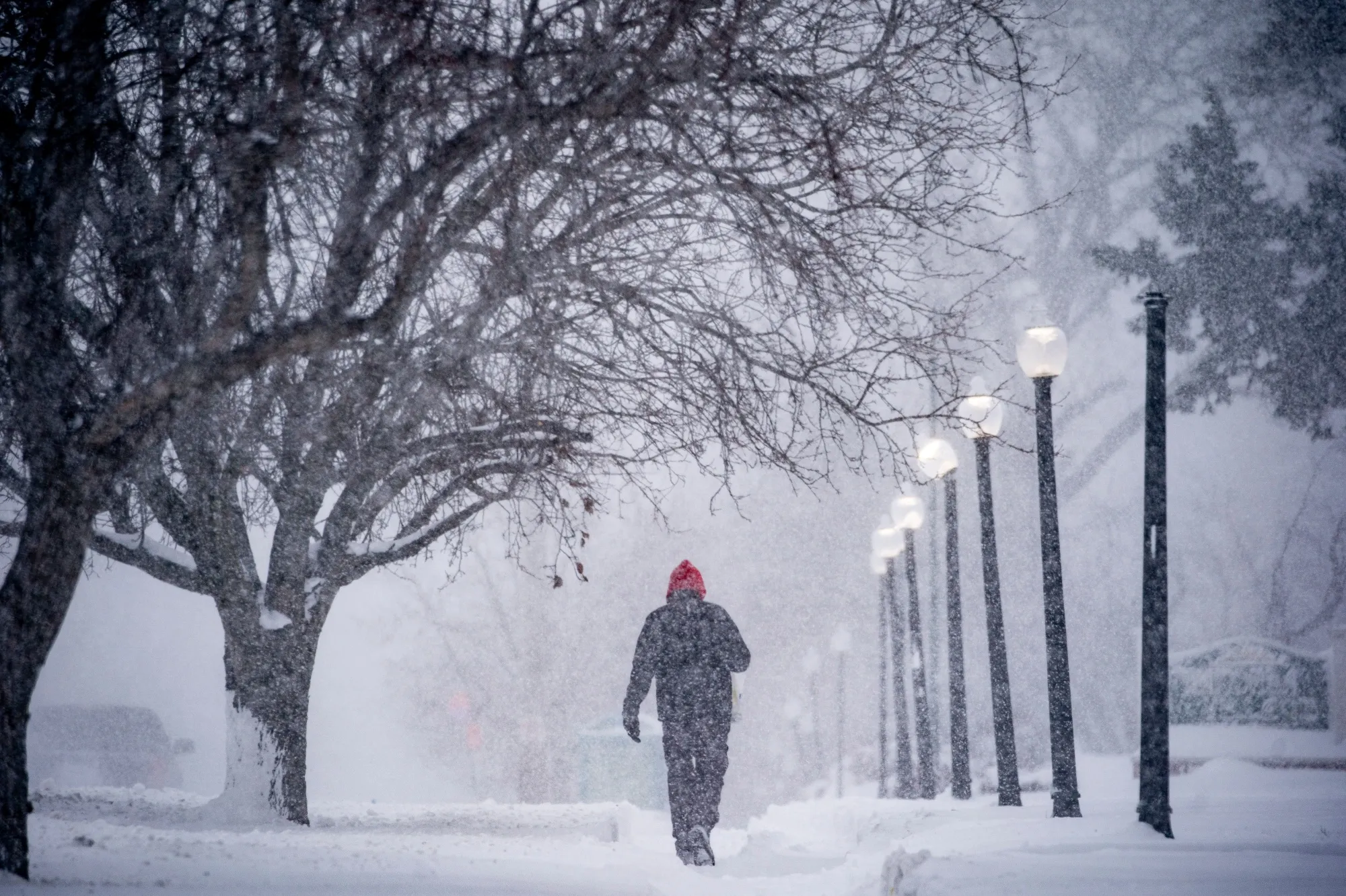 一名行人在爱荷华州德莫因市的冬季风暴中走过雪地,之前极地涡旋释放了北极寒流。摄影师:阿尔·德拉戈/彭博社当涡旋减弱或拉伸时,它允许寒冷的气流向南逃逸,进入北半球冬季的温和地区。