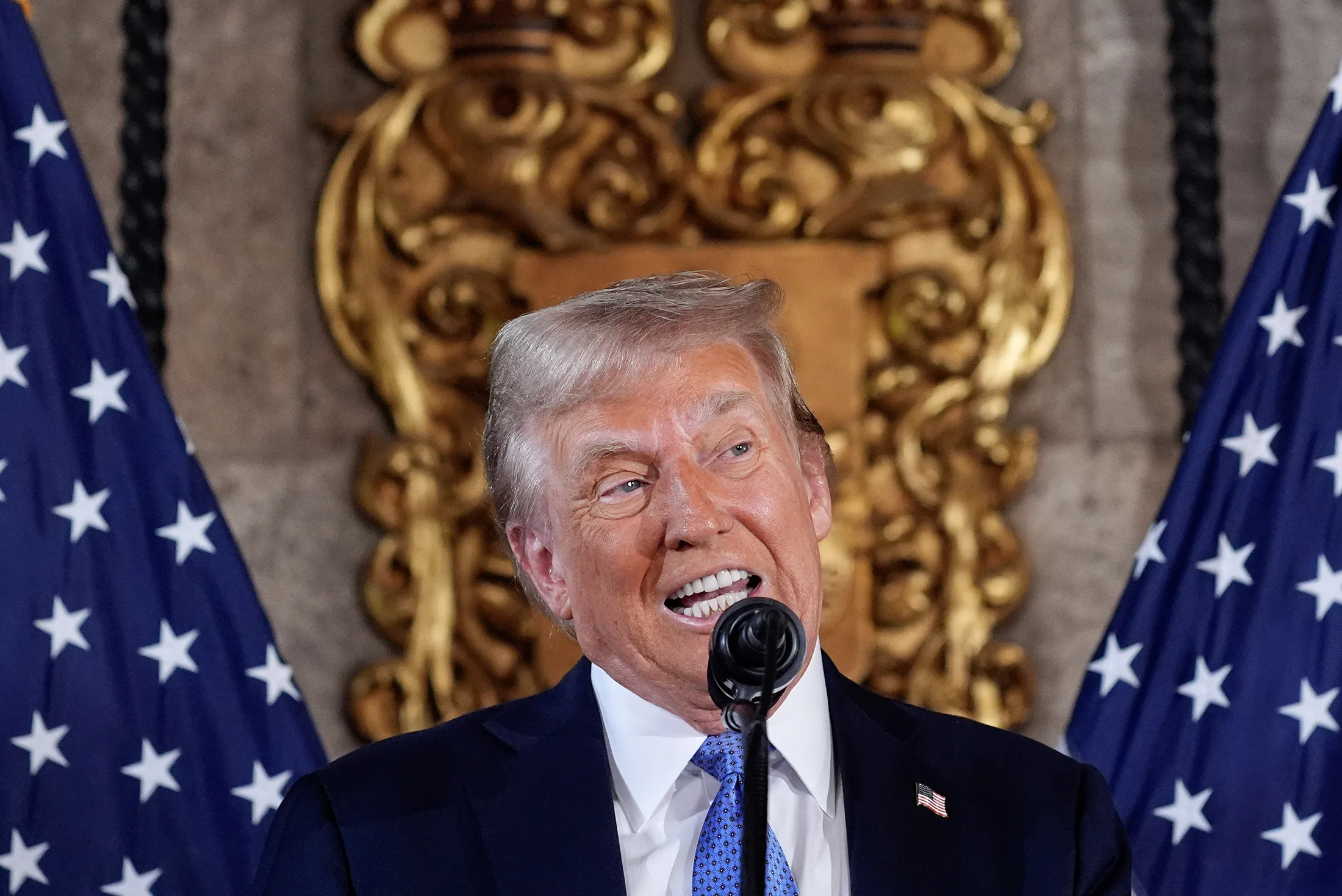 当选总统唐纳德·特朗普在佛罗里达州棕榈滩的马阿拉歌举行的新闻发布会上发言,时间是12月16日。