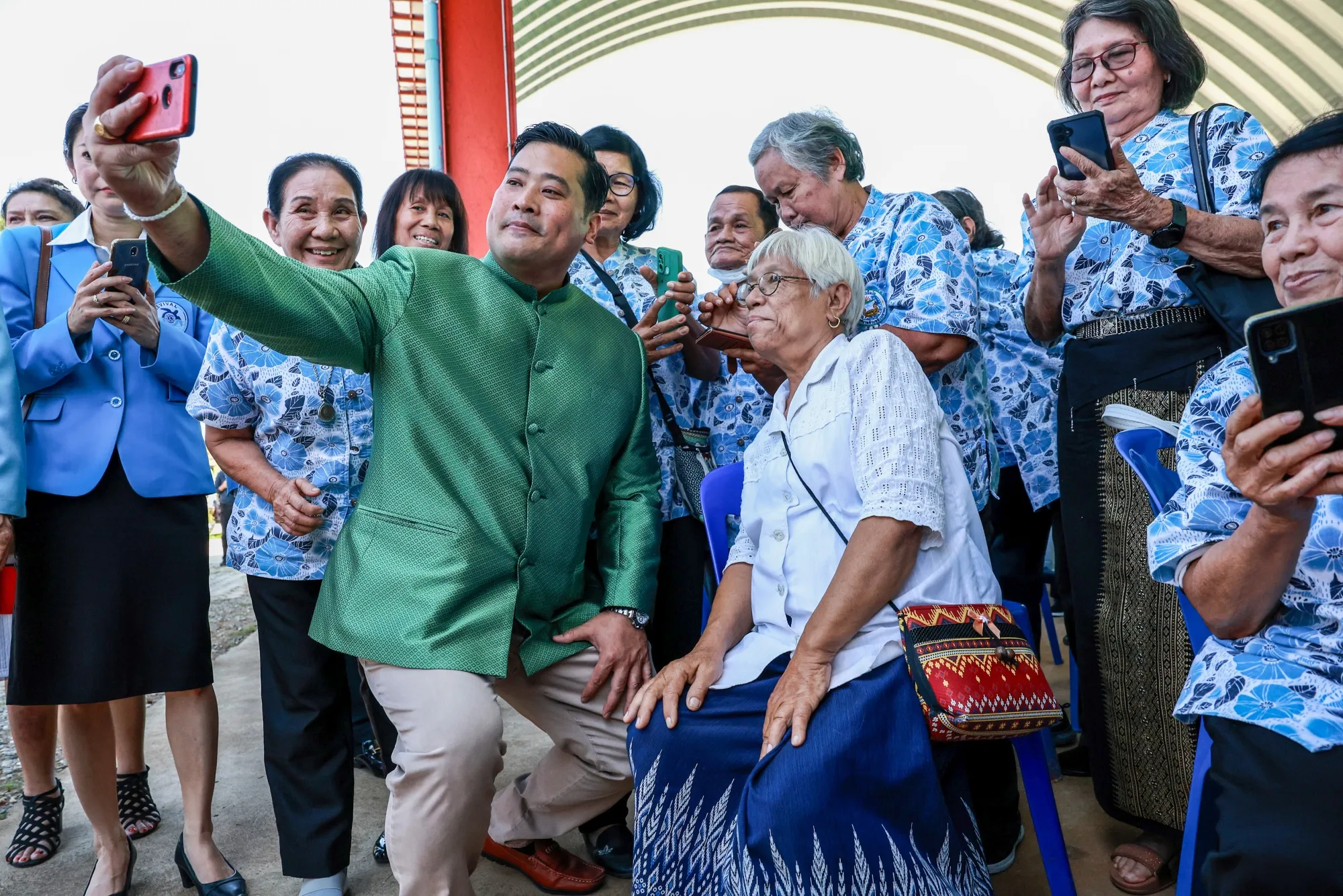当他抵达泰国北部的一所学校时,数百名村民立即站起身来,双手合十以传统的合十礼表示尊敬。甚至有几个人跪下了。