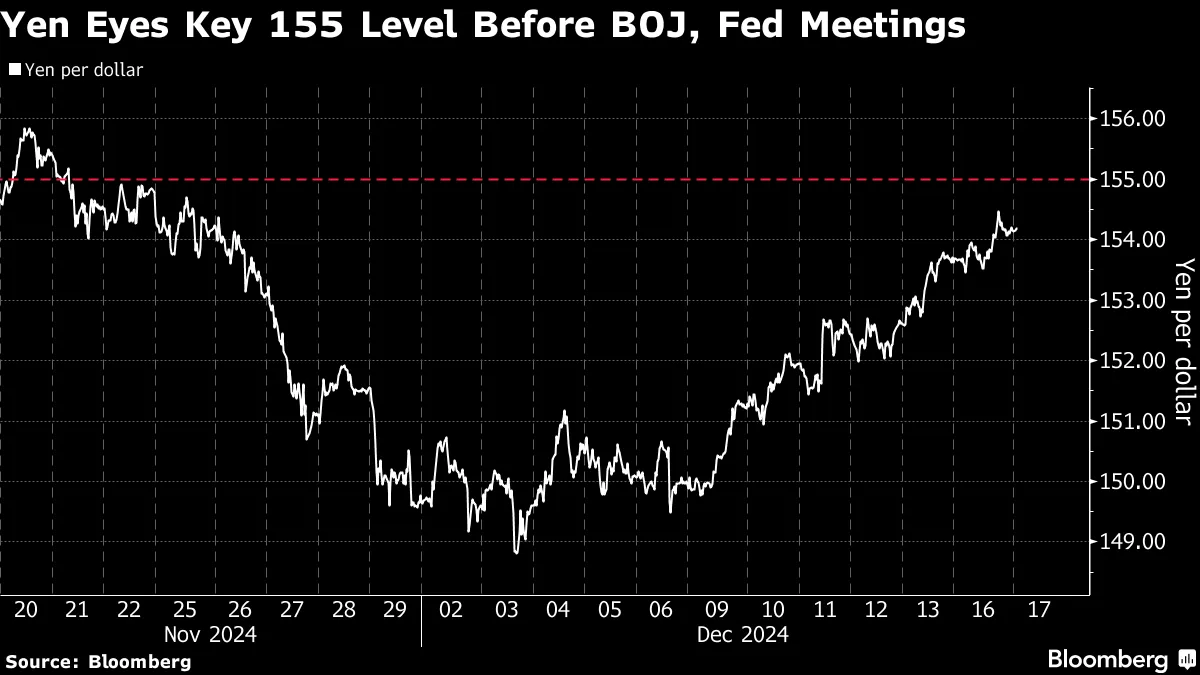日元贬值接近备受关注的155水平,临近日本央行 - 彭博社