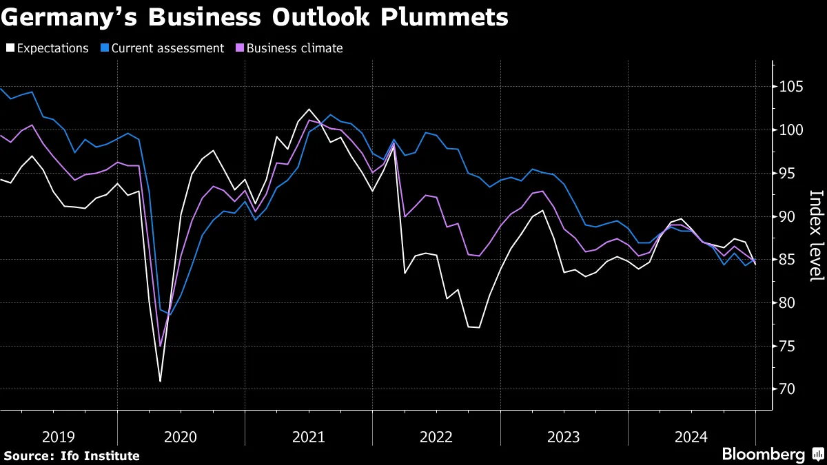 德国商业预期在12月下降,突显出欧洲最大经济体面临的挑战,快闪选举可能带来政府更迭。